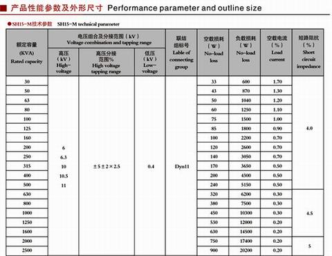 SH16(15)-2500KVA/35KV非晶合金油浸式變壓器并列運行的應滿足什么條件? 下面是山東聊城變壓器有限公司生產的SH16(15)-2500KVA/35KV非晶合金油浸式變壓器技術參數: