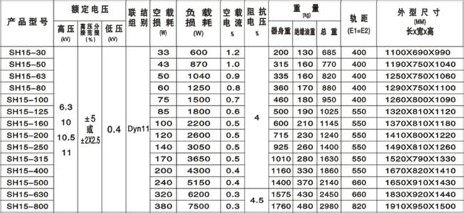 SBH15-M系列10KV/6KV-0.4KV變壓器技術(shù)參數(shù)圖: